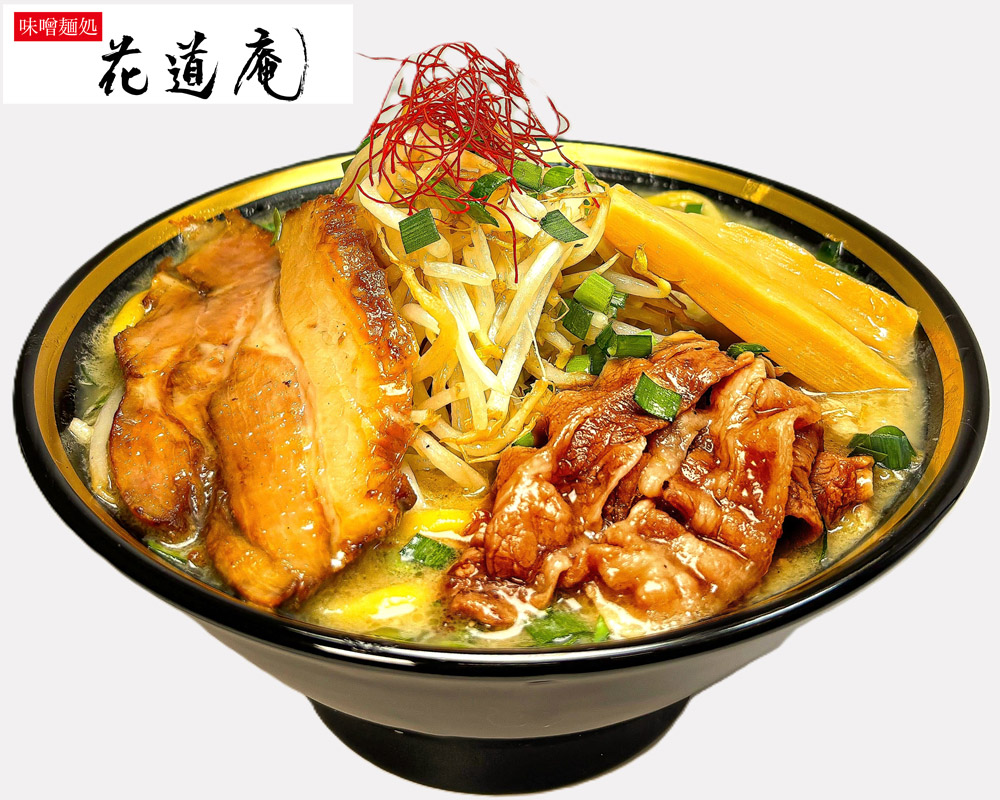 濃厚スープに味噌を合わせ、特製豚バラ⾁とチャーシューをトッピングした⼀杯