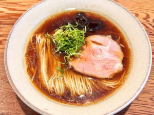 スープは豚清湯の醤油味。タレはトイボックスの醤油ダレをベースに改良したもの。連日食べたくなる親近感のあるおいしさ。私が背脂好きだからかもしれないが、スープを一口飲んで完飲を確信。実際、完飲だった。『懐かしさと新しさを感じられる⼀杯』。麺は、「トイボックス」や「ロックンスリー」と同じ大成食品製で中細ストレート。麺もスープとの相性良く、啜り甲斐がある。塩が出たらまた食べに来たい。
